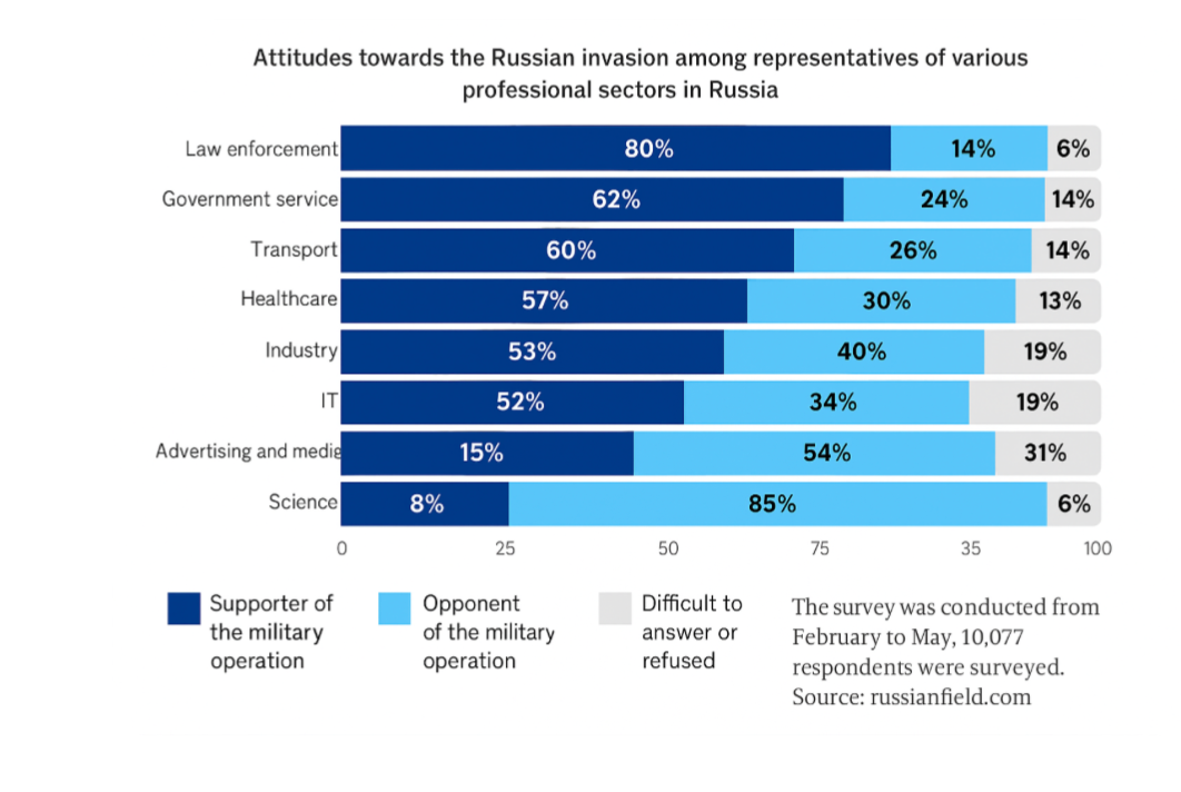 Thus, calculations of the percentage of academics who have signed letters of protest against the war (the number of signatories is divided by the total number of researchers and teachers in Russia) appear to be digital manipulations that say nothing about the real attitude toward the war in Russian academia.