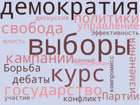 После курса наиболее частыми ассоциациями стали термины демократия, курс (как политический курс), выборы и свобода.