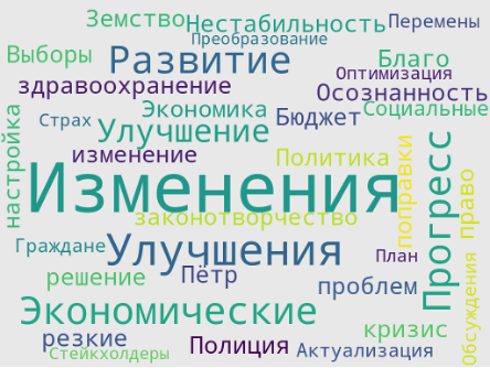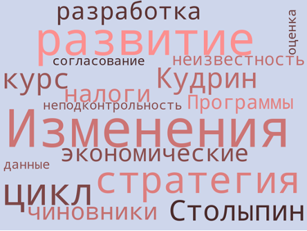 По итогам курса студенты продолжили видеть в реформах изменения и развитие, но дополнили свой ассоциативный ряд стратегией, циклом (политическим) и двумя государственными деятелями (Петр Столыпин и Алексей Кудрин).