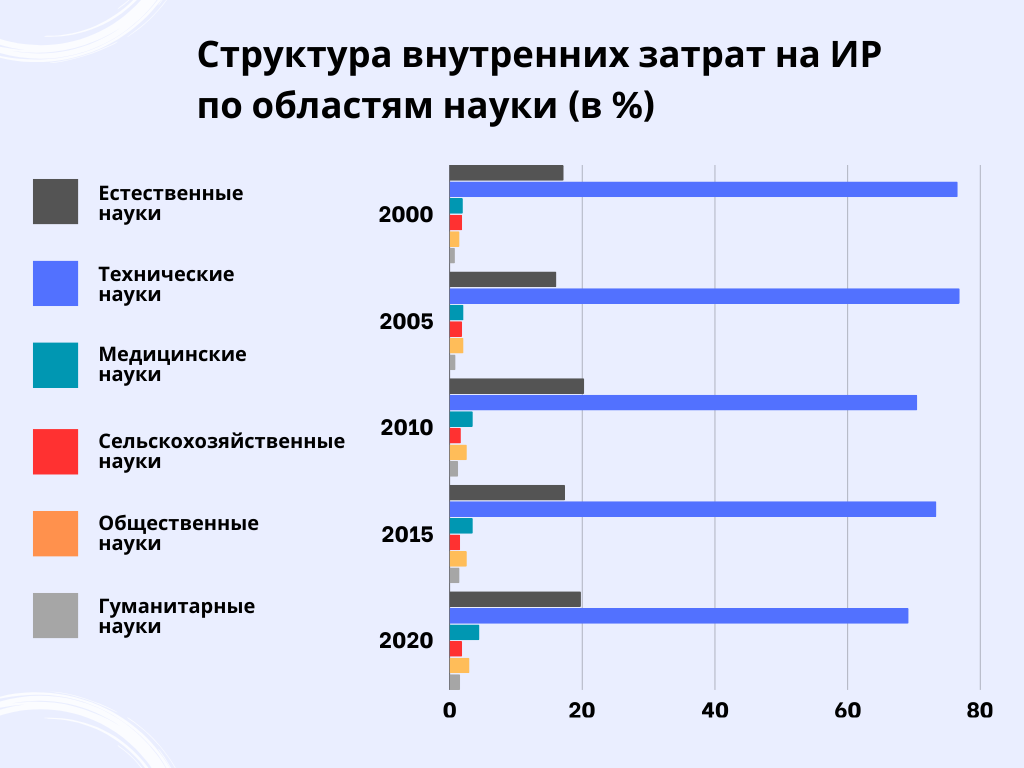 - на естественные и технические науки – 90 процентов общих затрат на исследования.